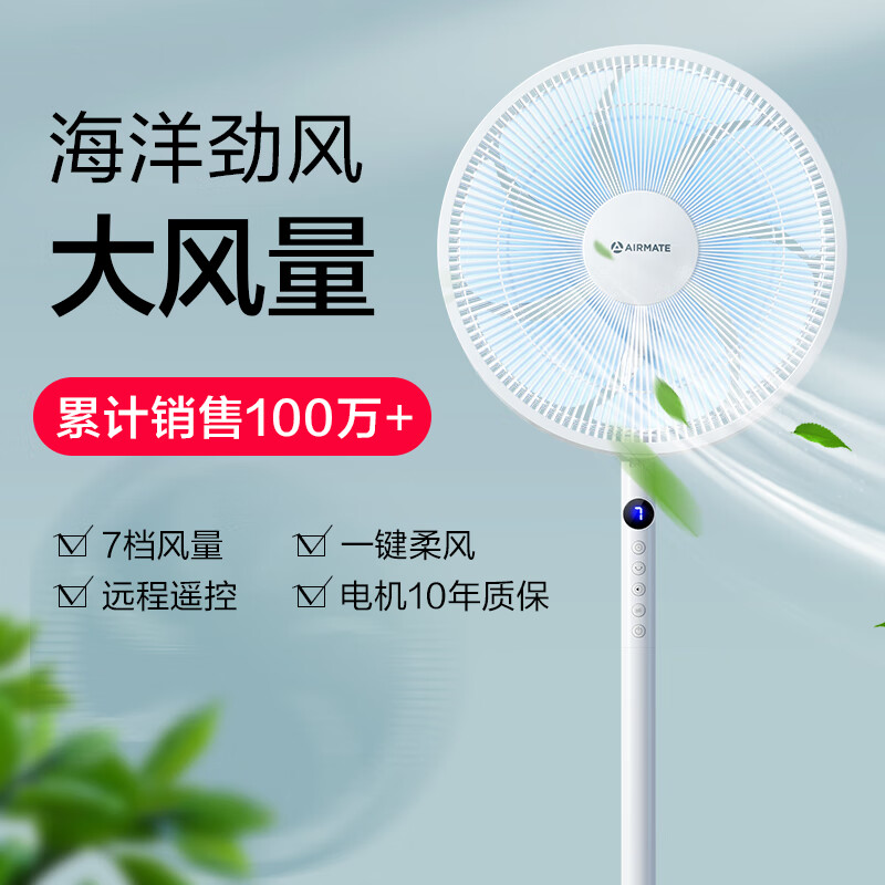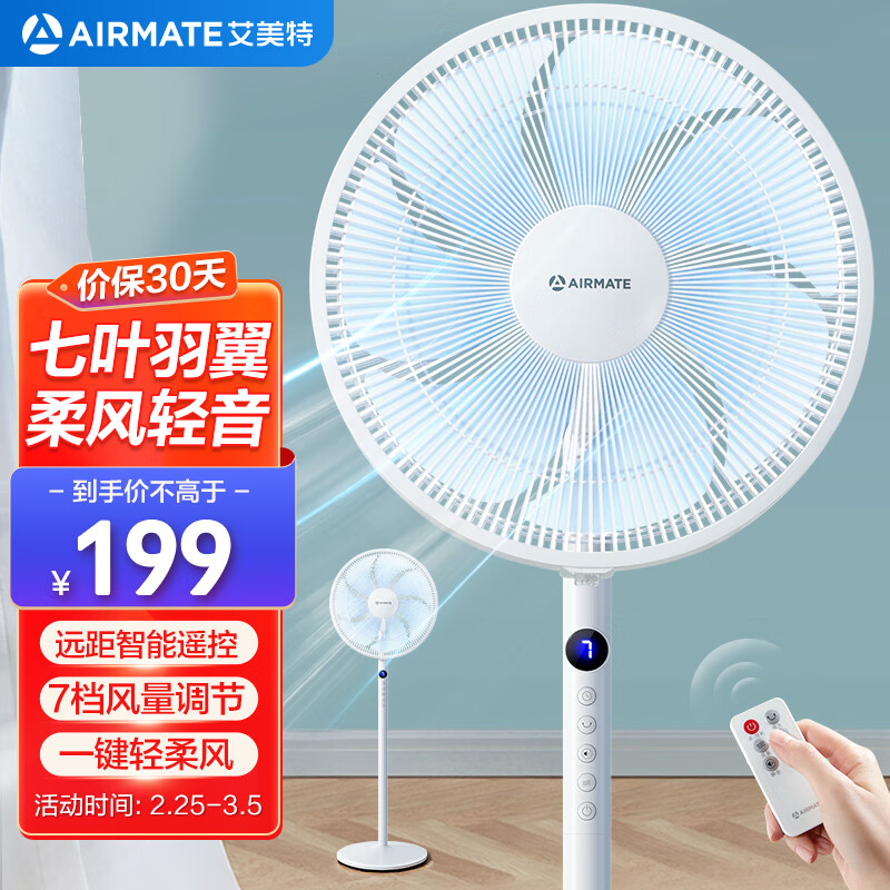 艾美特(AIRMATE)七叶家用遥控电风扇7档大风量空气循环摇头立式落地扇节能轻音柔风预约定时落地式风扇 CS35-R20价格:218.00元!