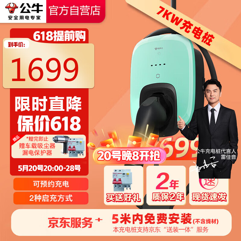 公牛新能源汽车充电枪交流充电桩适配于小米su7汽车特斯拉比亚迪极氪蔚来等 7KW送装一体送基础安装价格:1699.00元!