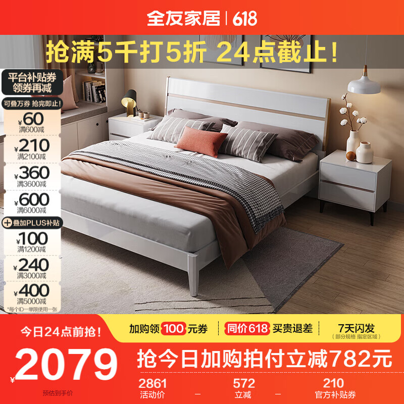 全友家居 床现代简约双人床双色拼接床屏板式床卧室家具126101B价格:2861.25元!