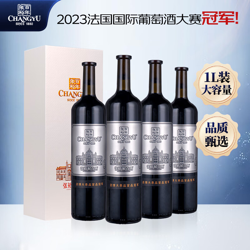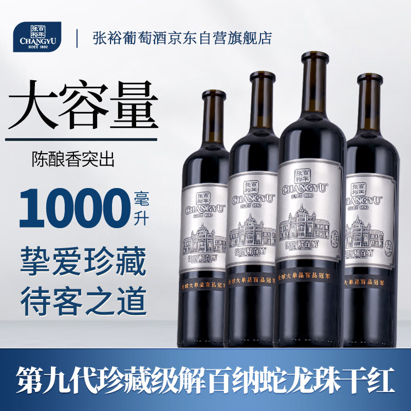 张裕(CHANGYU)九代珍藏级解百纳蛇龙珠干红葡萄酒1L大酒纪念版*4瓶整箱国产红酒价格:1076.00元!