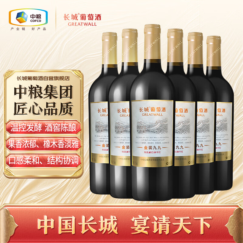 长城 特选级解百纳干红葡萄酒 750ml*6瓶 整箱装价格:548.00元!