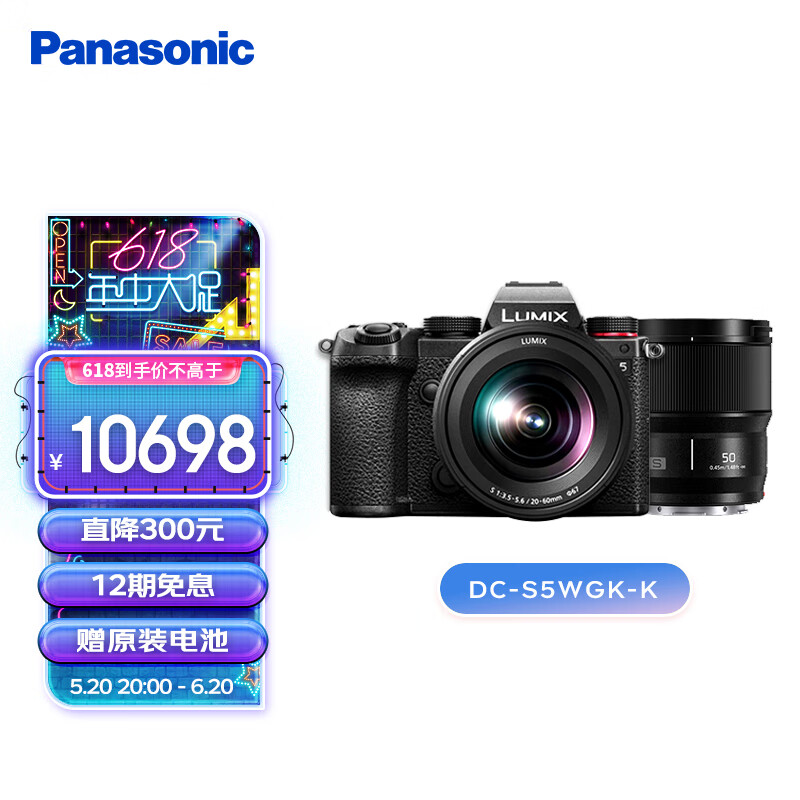 松下S5W(Panasonic)全画幅微单相机/无反/单电/数码相机 松下镜头20-60mm+ 50mm双镜头套机价格:10698.00元!