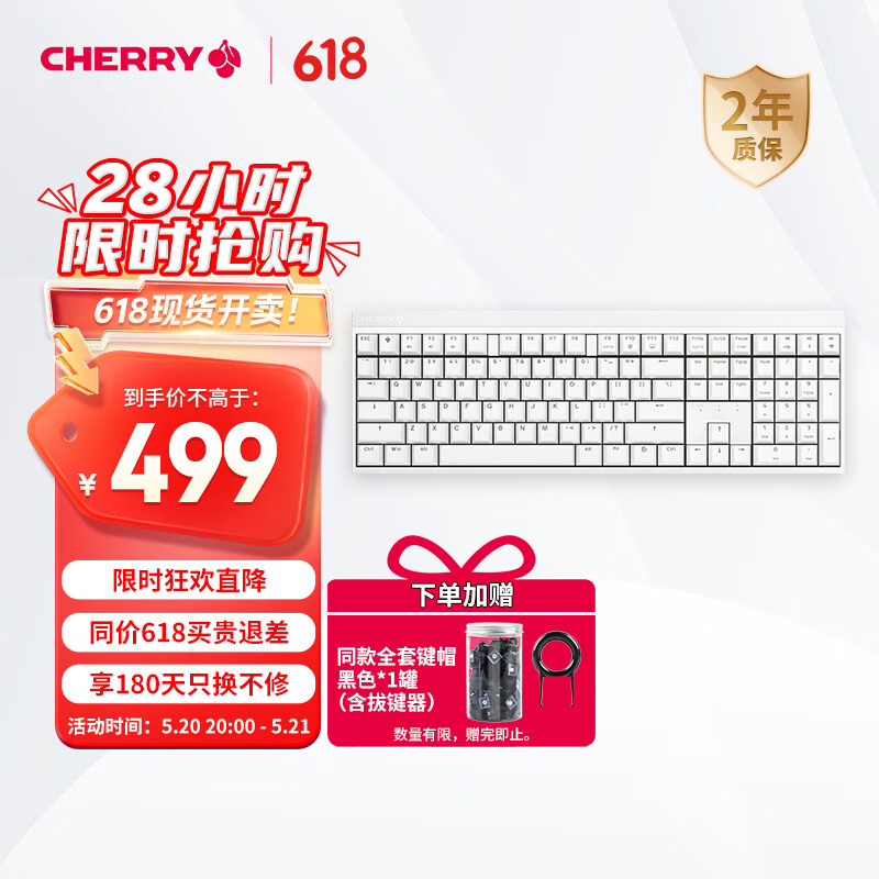 CHERRY樱桃 MX2.0S机械键盘 无线键盘 蓝牙有线三模 电竞 游戏键盘 办公电脑键盘 樱桃无钢结构 白色红轴价格:499.00元!