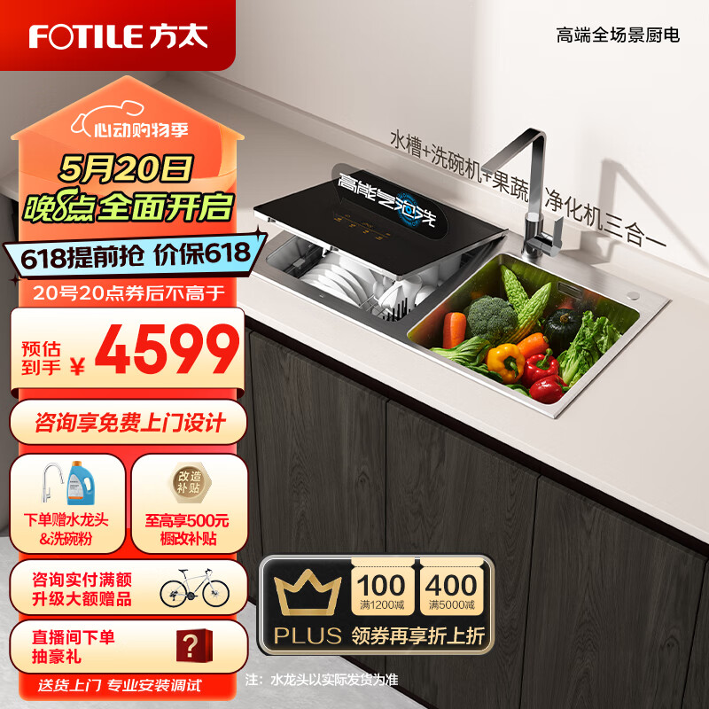 方太(FOTILE)洗碗机水槽式家用 跨界三合一 全自动洗烘一体 高能气泡洗 加强除菌 洗海鲜果蔬去农残 C3AL价格:4999.00元!