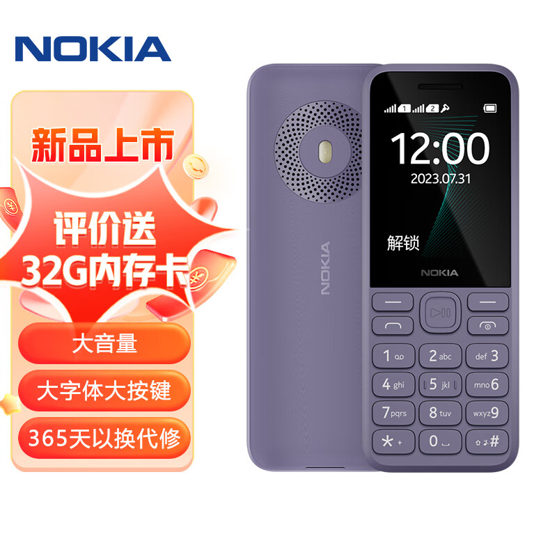 诺基亚(NOKIA)125(2023)紫色 直板按键 移动2G手机 双卡双待 老人老年手机 学生备用功能机 超长待机价格:169.00元!