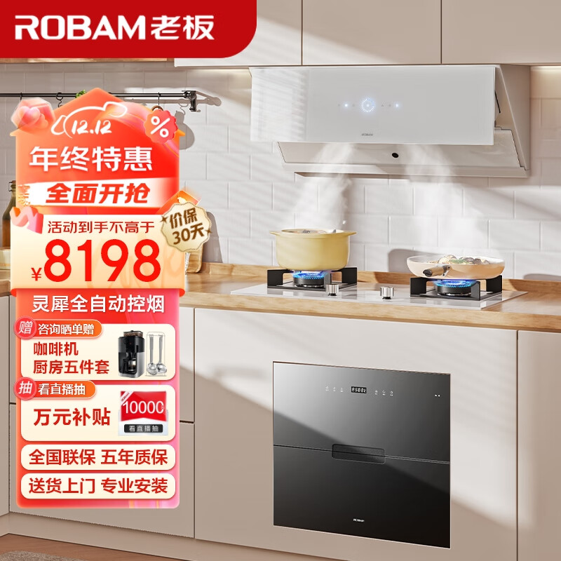 老板(Robam)侧吸变频灵犀25风量抽油烟机燃气灶具105L纯物理杀菌消毒柜家用厨房多件套29X8S+37B8XWT+XB710A价格:8198.00元!