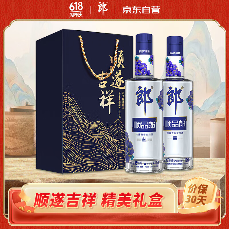 郎酒 顺品郎蓝顺 浓酱兼香型白酒 45度480ml*2瓶 顺遂吉祥礼盒装价格:160.00元!