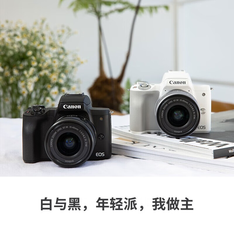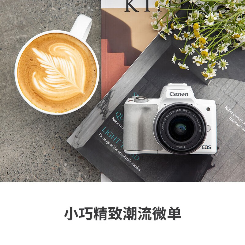佳能(Canon)EOS M50 Mark II M50二代单机身+EF-M 11-22mm F4-5.6 IS STM镜头微单数码相机 白色 64G套装价格:8963.00元!