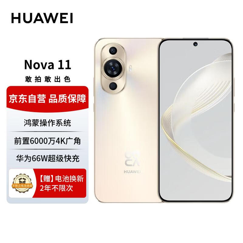 华为nova11手机 前置6000万超广角人像 6.88毫米超薄臻彩直屏 256GB 晨曦金价格:2549.00元!