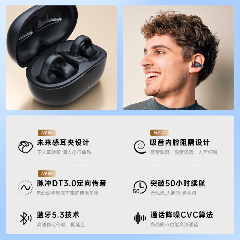 chiline蓝牙耳机耳夹式骨传导概念开放式真无线跑步运动通话降噪耳夹式不入耳苹果安卓电脑通用价格:178.00元!