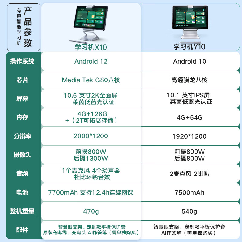 有道学习机X10 护眼平板电脑学生平板 英语学习机儿童小学初中高中同步学 平板电脑早教机点读机价格:3299.00元!