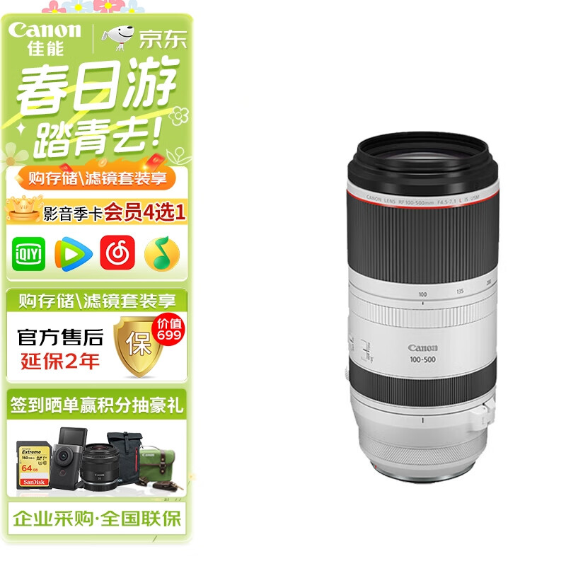 佳能(Canon)RF100-500mm F4.5-7.1 L IS USM 超远摄变焦镜头【滤镜防护套装】价格:19999.00元!