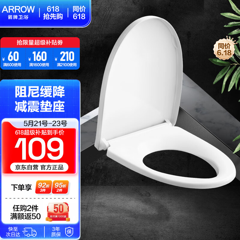 箭牌马桶盖家用通用马桶普通盖板卫生间坐便器缓降缓冲加厚双层盖板 V型价格:109.00元!