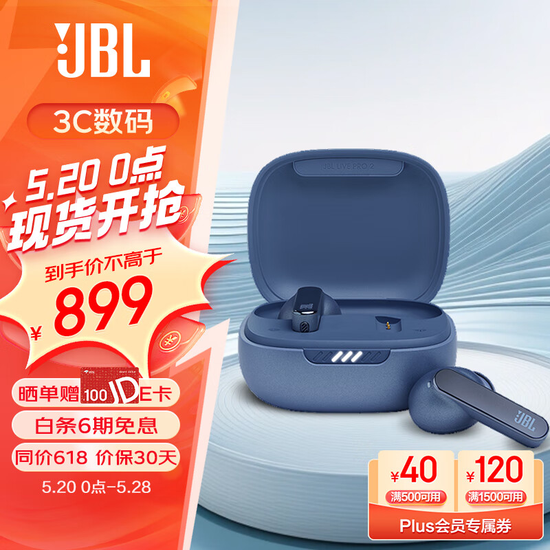 JBL LIVE PRO2真无线入耳式蓝牙耳机 40dB深度主动降噪 高音质音乐游戏电竞运动耳机 跑步骑行 蓝色价格:1499.00元!