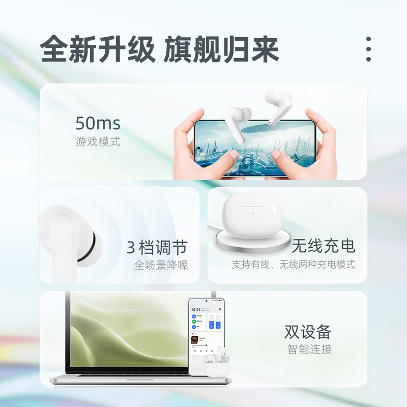 魅蓝Blus2S魅族蓝牙降噪耳机真无线入耳式游戏运动适用魅族20pro主动降噪超长续航通用苹果手机白色价格:329.00元!