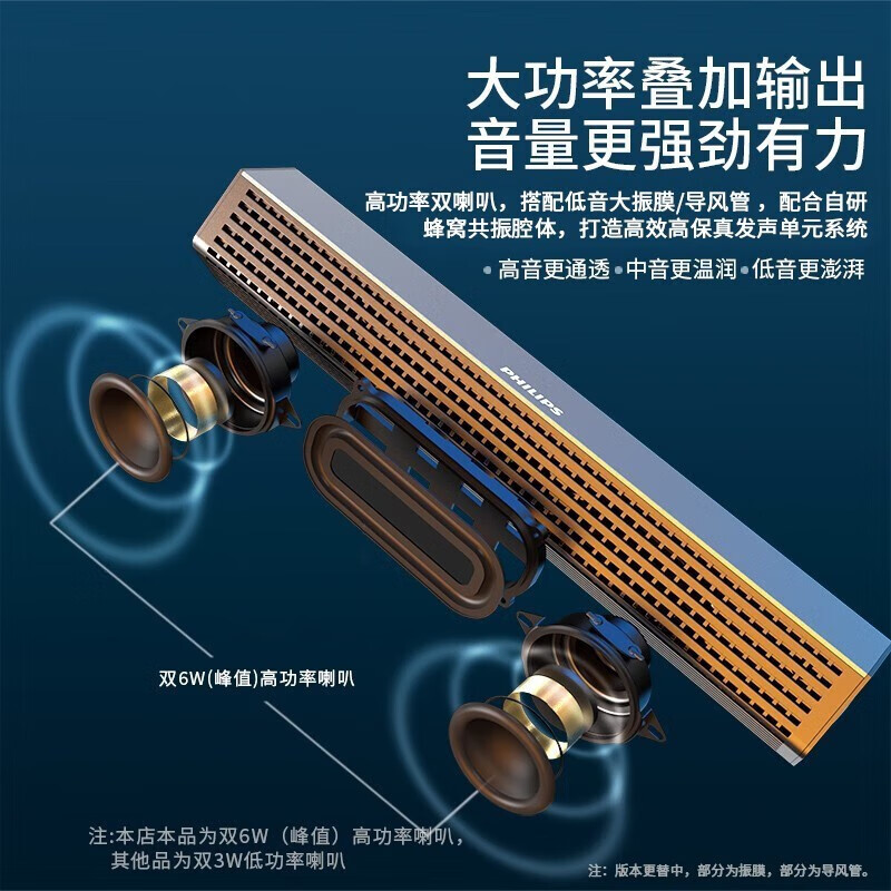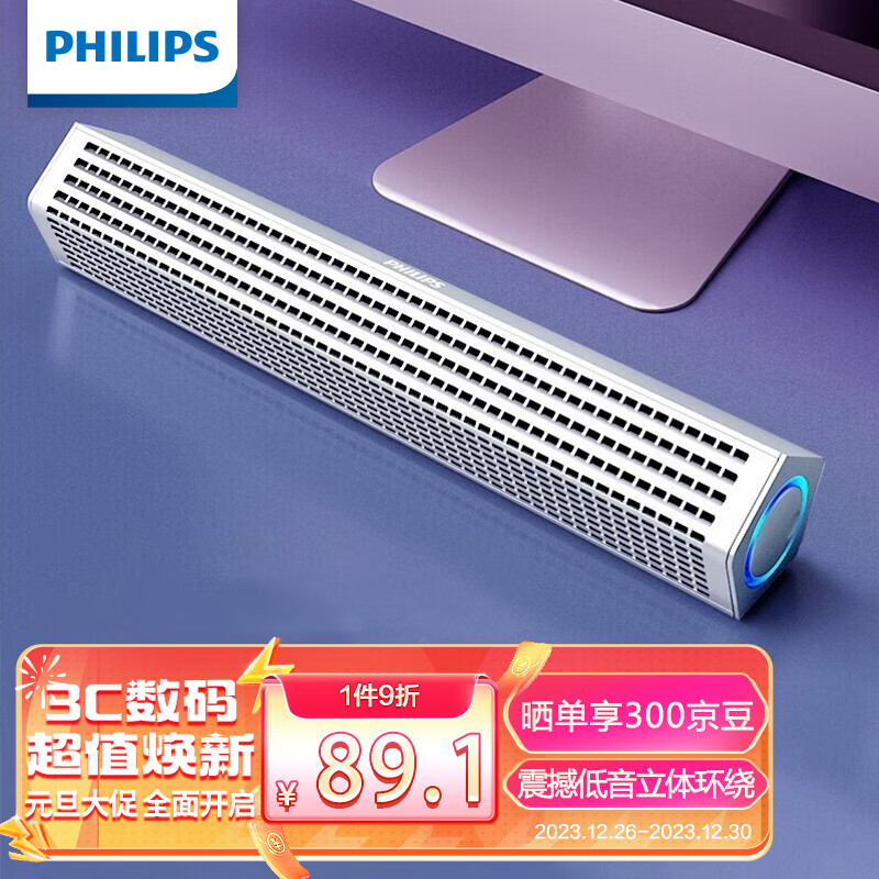 飞利浦SPA510电脑音响蓝牙音箱有线小音响家用桌面台式机超重低音炮长条笔记本迷你小钢炮家庭影院 SPA510X白色价格:99.00元!