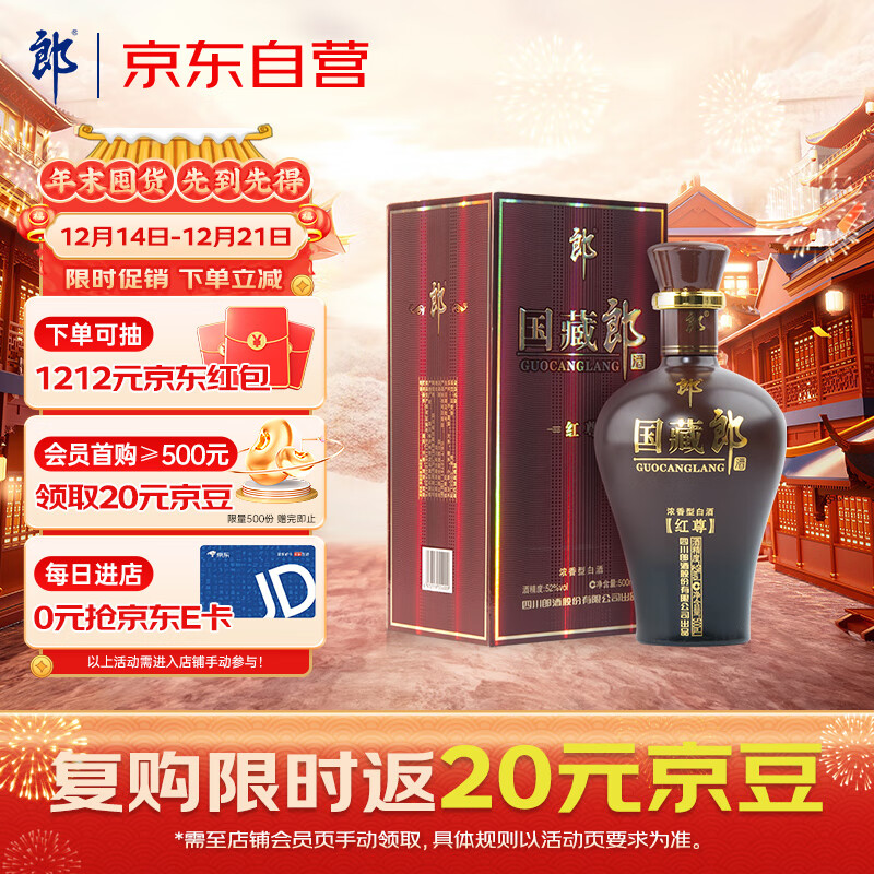 郎酒 国藏郎红尊 浓香型白酒 52度 500ml 单瓶装 送礼 【高度白酒】价格:89.00元!