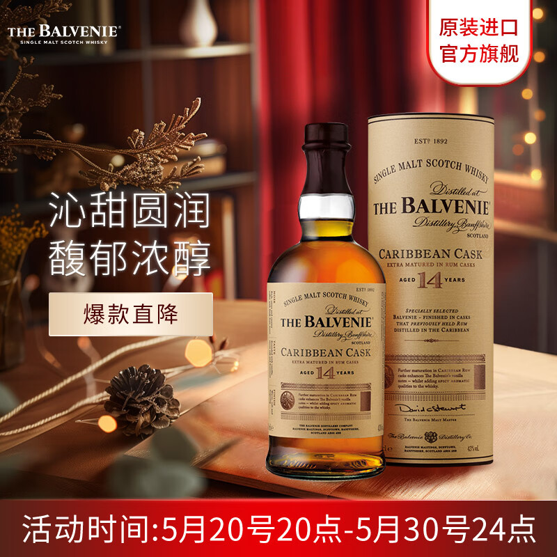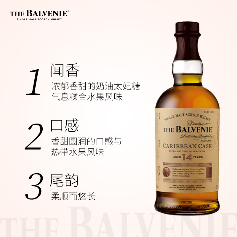 苏格兰百富(The Balvenie)加勒比桶 14年苏格兰斯佩赛区单一麦芽威士忌洋酒礼盒700ml价格:760.00元!