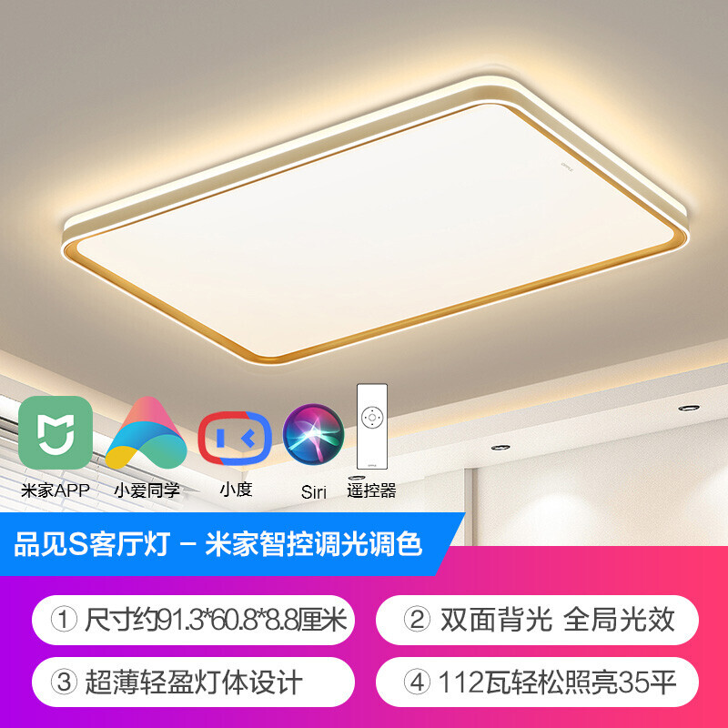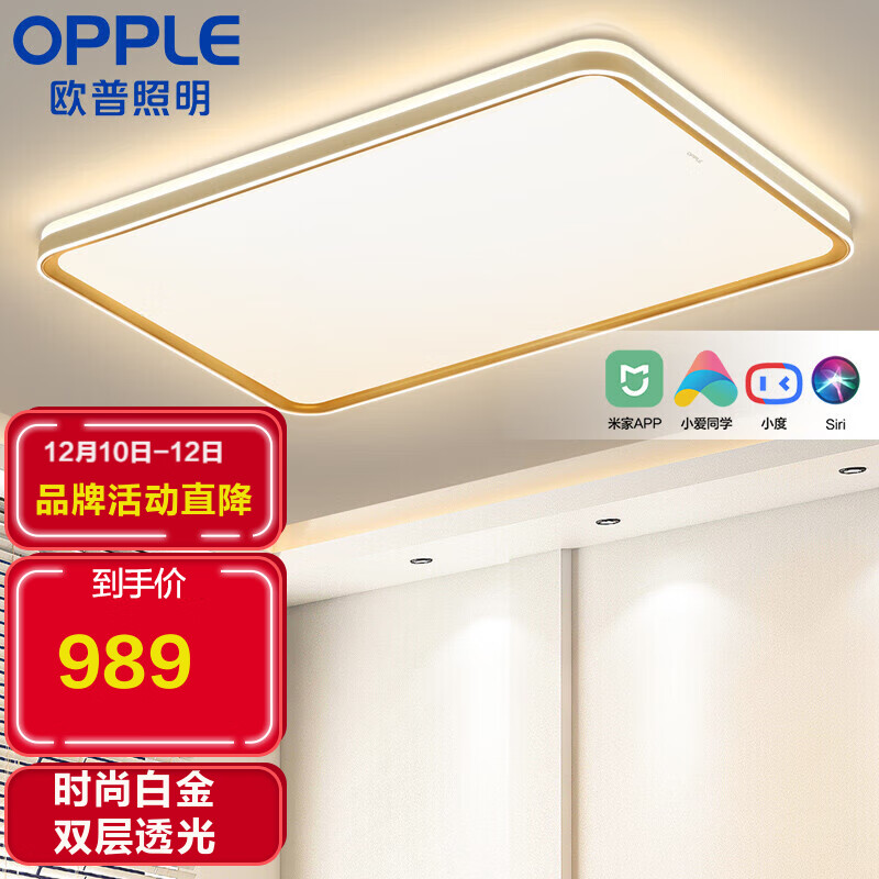 欧普照明(OPPLE)LED智能吸顶灯客厅灯AI语音米家APP控制灯具灯饰套餐 智能音箱/AI智控调光 品见白1价格:989.00元!