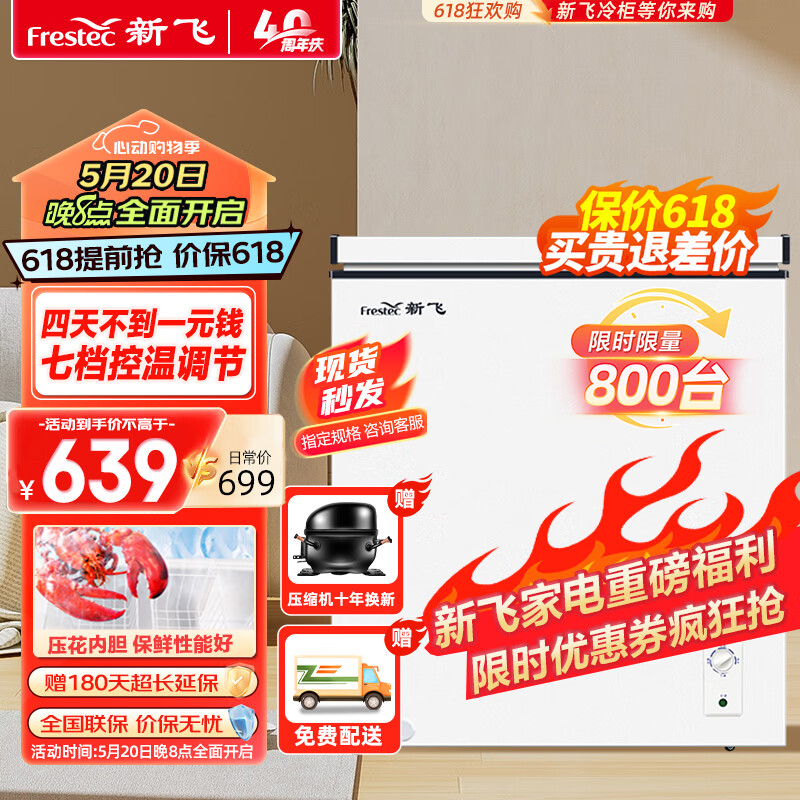新飞(Frestec)141升单温小冰柜 一级能效冷藏冷冻转换家用变温母乳小冰箱冷柜 BC/BD-141HJ1EW价格:699.00元!