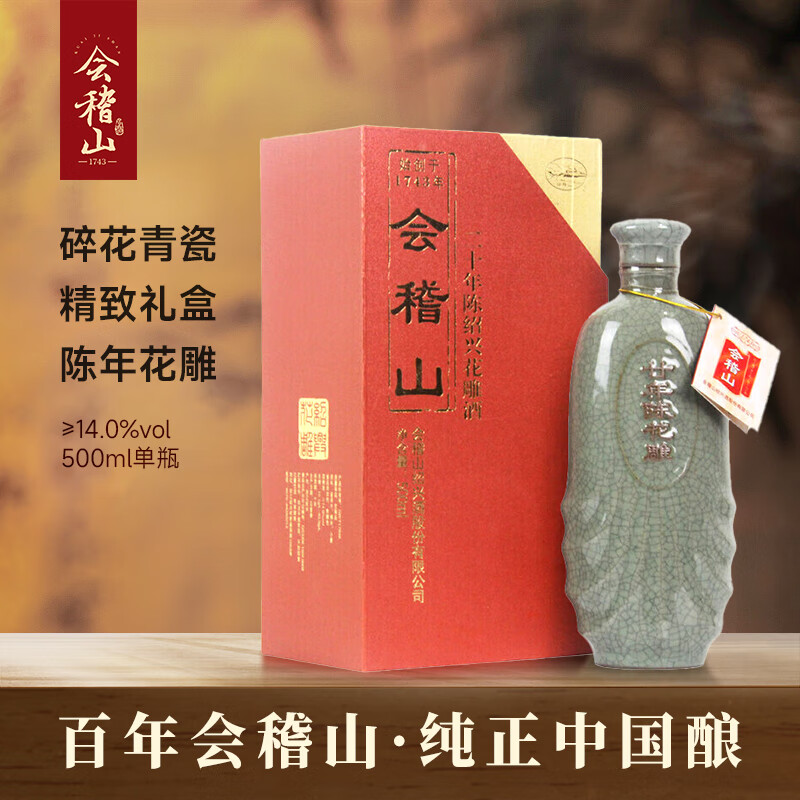 会稽山 典雅二十年 传统型半干 绍兴 黄酒 500ml 单瓶装 礼盒花雕价格:289.00元!