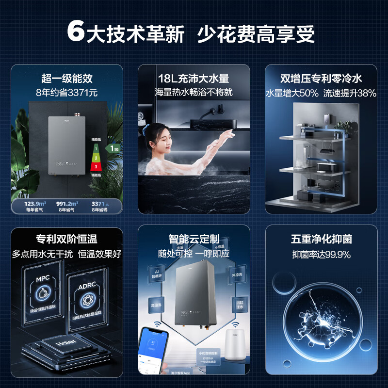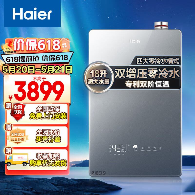 海尔(Haier)18升燃气热水器天然气超一级能效零冷水彩晶屏静音家用大水量JSLQ32-18meta-PRO(12T)U1价格:3899.00元!