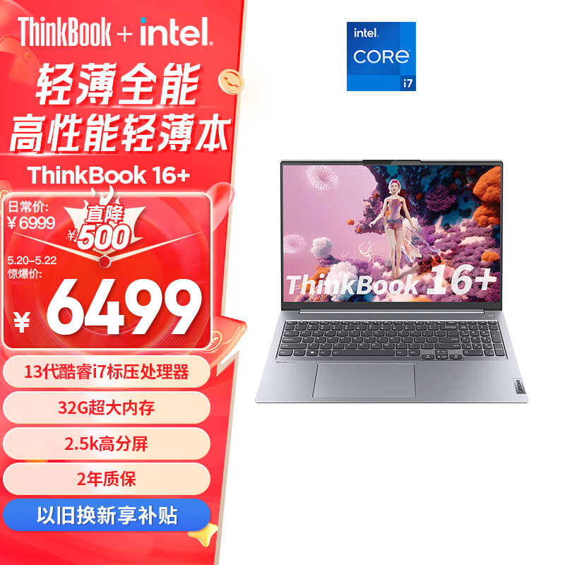 ThinkPad联想笔记本电脑ThinkBook 16+ 英特尔Evo 16英寸标压便携轻薄办公本 13代i7-13700H 32G 512G 2.5K价格:6499.00元!