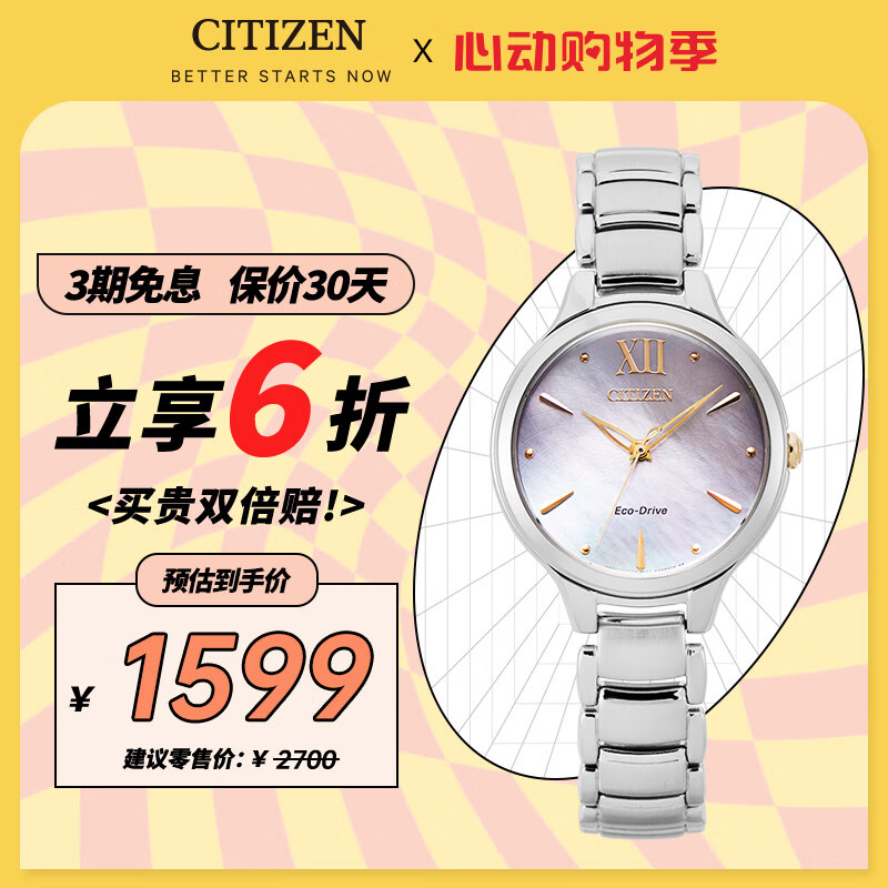 西铁城(CITIZEN)手表女日韩表L系列光动能贝母盘钢带时尚送礼物女友EM0558-81Y价格:1599.00元!