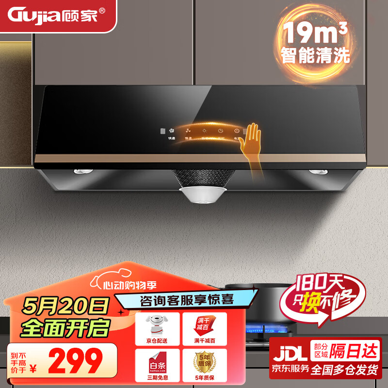 顾家油烟机中式抽油烟机厨房吸油烟机大吸力排油烟机抽烟机家用小尺寸710 升级触摸屏+自动清洗-自行安装价格:419.00元!