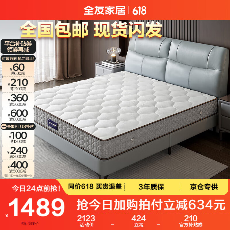 全友家居 乳胶床垫正反两用防螨抗菌面料独袋弹簧床垫105111Ⅰ价格:2123.75元!