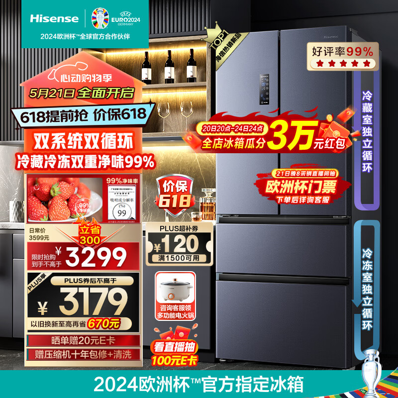 海信(Hisense)法式冰箱四开门家用电冰箱一级能效无霜525L全空间净化双变频BCD-525WNK1PU双系统双循环价格:3599.00元!