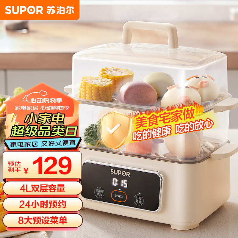 苏泊尔(SUPOR)煮蛋器 电蒸锅 蒸蛋器 多功能家用 智能预约可定时自动断电 早餐双层煮蛋神器 ZN23FC857价格:129.00元!