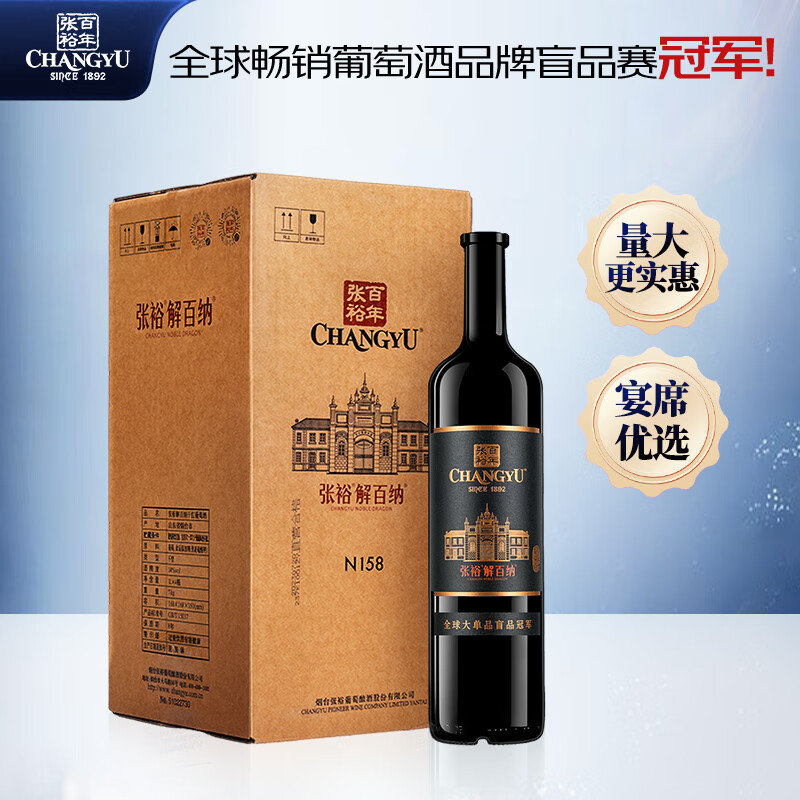 张裕(CHANGYU) 第九代特选级解百纳蛇龙珠干红1L大酒纪念版*4瓶整箱红酒送礼价格:640.00元!