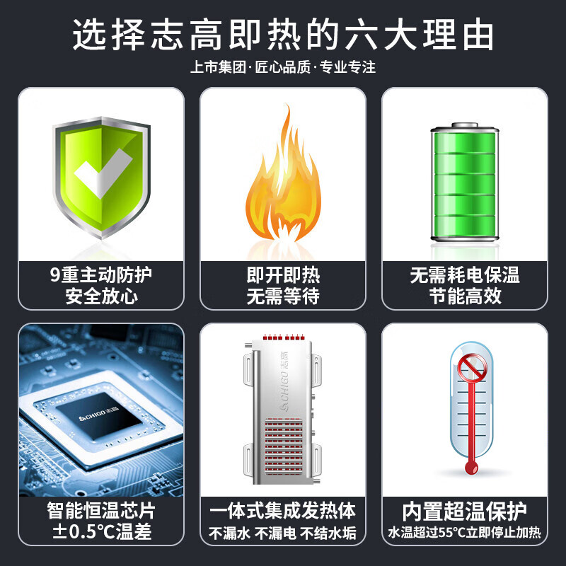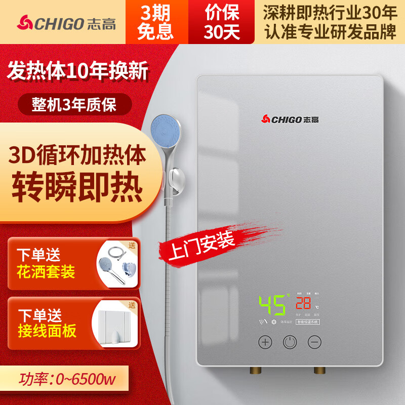 志高(CHIGO)即热式电热水器 6500W速热小厨宝省电家用集成洗澡免储水多功率可调防漏电 银色 包安装 KBR-B65价格:398.00元!