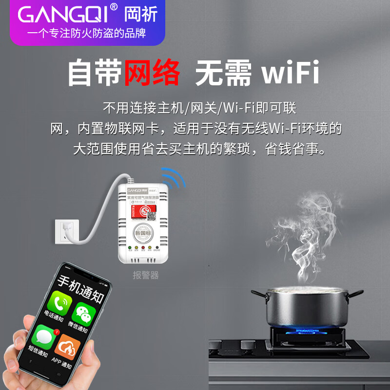 岡祈(Gangqi)远程手机通知 燃气报警器 家用厨房天然气报警器 感应煤气甲烷泄漏探测YJ-607价格:169.00元!