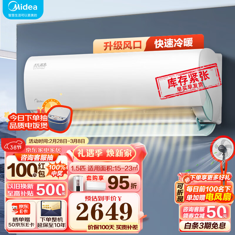 美的(Midea)空调 1.5匹 极酷省电 新一级能效 变频冷暖 自清洁 壁挂式空调挂机 智能家电 KFR-35GW/N8VHA1价格:2699.00元!