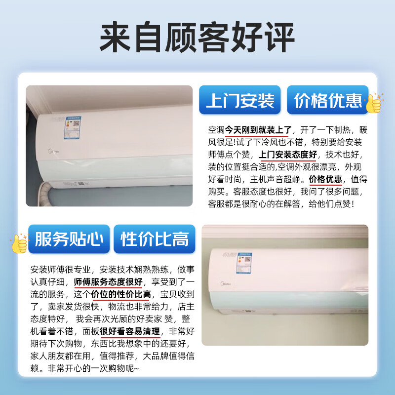 说实话这款美的KFR-35GW/N8VHA1挺好的, 做工精细 ,物流速度很快,下单第二天就收到了,超出了期望。