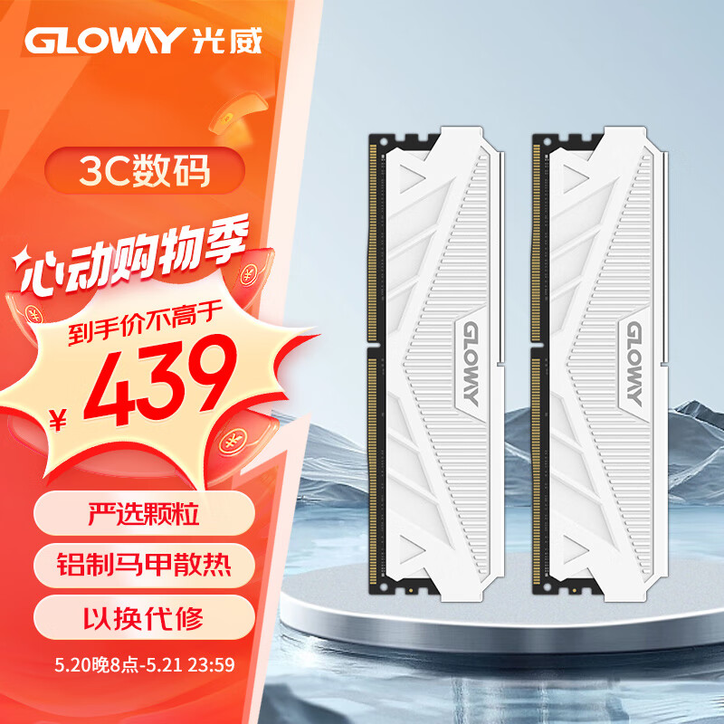 这款光威GLOWAY 天策系列 DDR4 PC 32GB(16GBx2) 3600 皓月白 TAC4U3600E18162C满意的,价格也很合理的。这个商品的外观设计非常吸引人,给人一种高级感。
