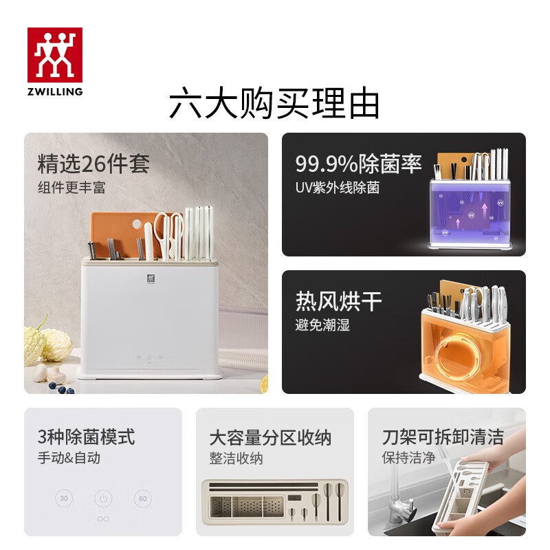 双立人(ZWILLING)刀具套装中片刀斩刀多用刀菜刀剪刀砧板餐具珍珠白除菌刀架26件套价格:2488.00元!