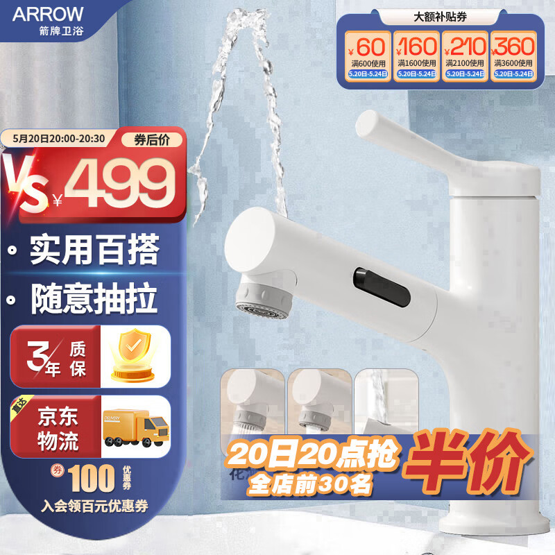 箭牌(ARROW)浴室水龙头冷热 面盆龙头 洗脸盆水龙头AE4175MWP价格:499.00元!
