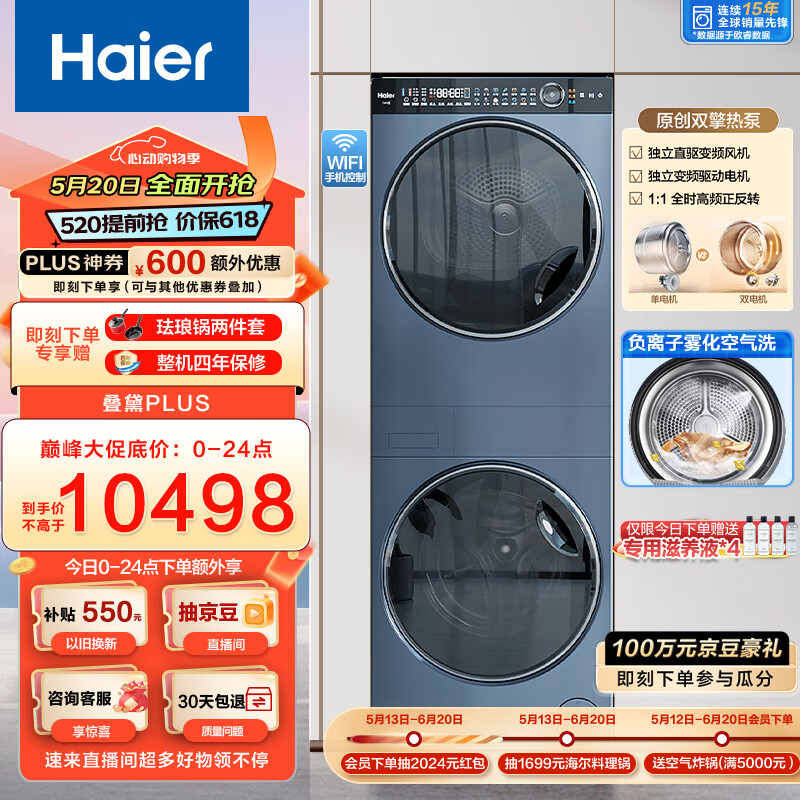海尔(Haier)叠黛和美Y12洗烘套装12KG精华洗滚筒洗衣机全自动+双擎热泵烘干机家用 H9 Y12BLD12U1 以旧换新价格:10098.00元!