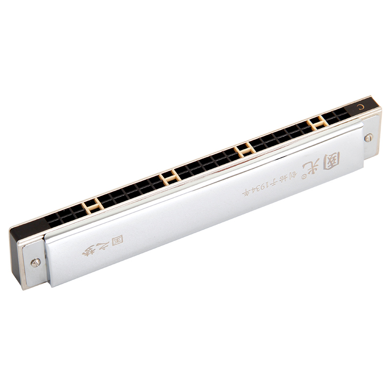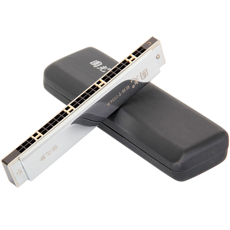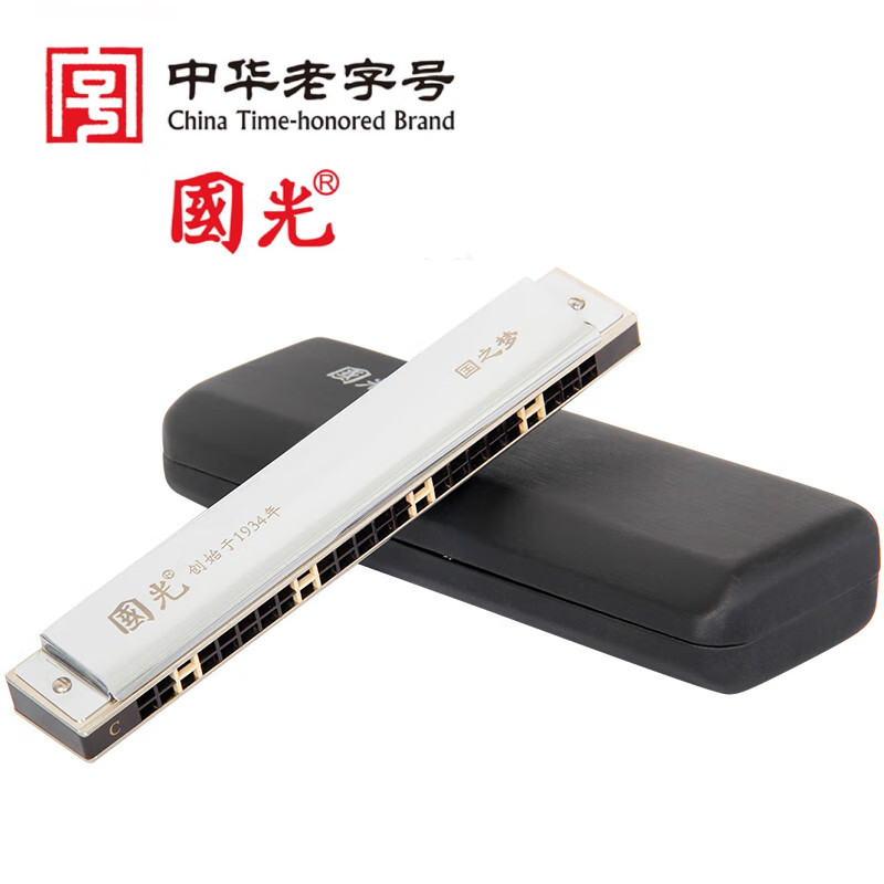 国光 24孔复音口琴国之梦专业演奏比赛级口琴C调(银色/眼镜盒装)价格:129.00元!