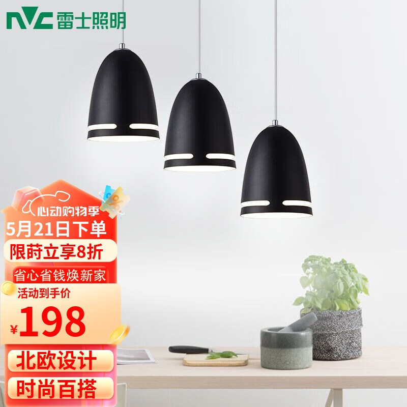 雷士(NVC)现代简约圆形餐厅灯北欧卧室吧台创意大气极光3头现代简约餐厅灯价格:247.00元!