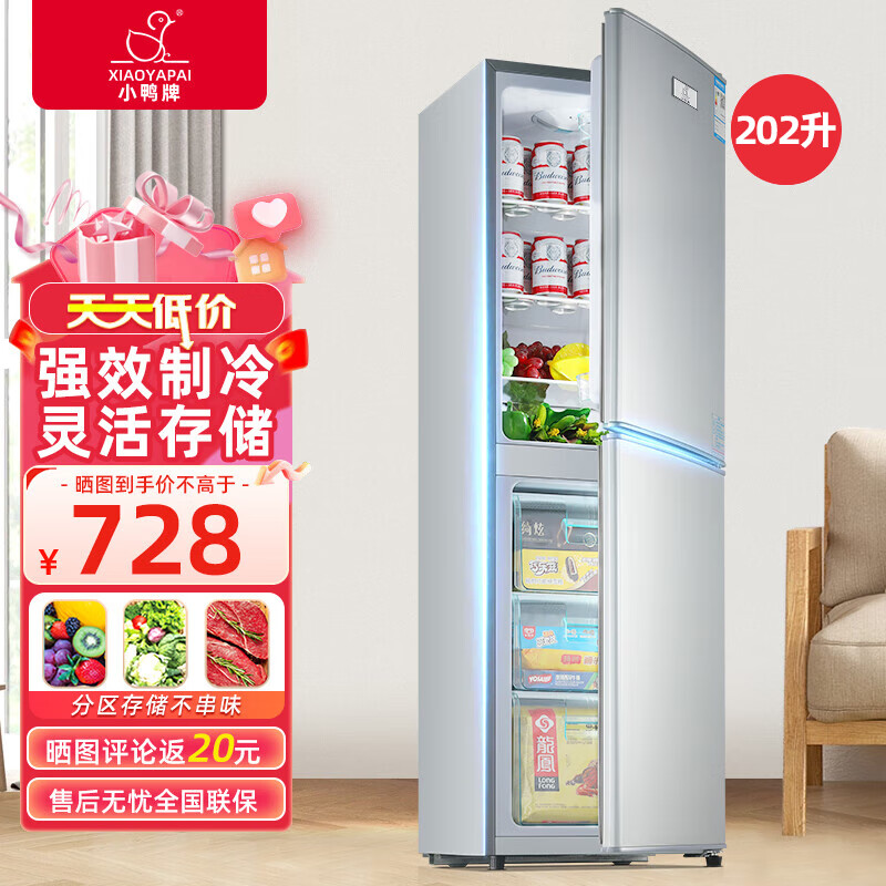 小鸭牌冰箱202升双开门冰箱小冰箱二门小型家用冰箱小型家用租房用宿舍两门电冰箱 一级能效节能省电低燥价格:748.00元!