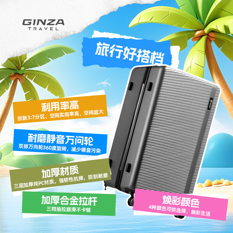 银座大容量行李箱简约商务拉杆箱开学登机箱A-2023 高级灰26英寸价格:279.00元!