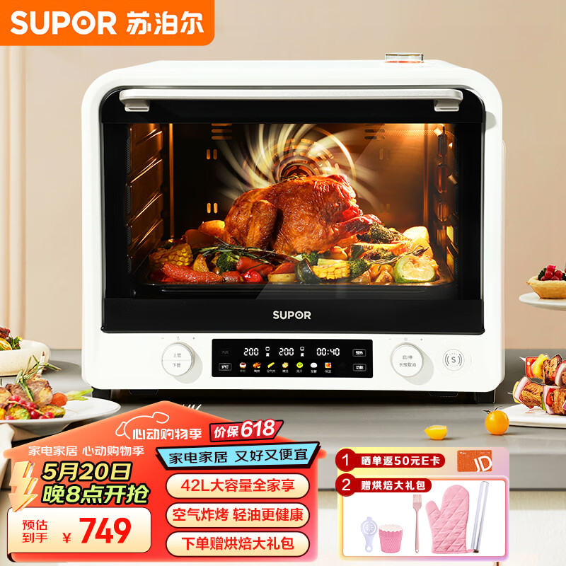 苏泊尔(SUPOR)家用风炉电烤箱 热风循环蒸汽烤炸一体42L大容量独立控温低温发酵搪瓷内胆一键风干OD42AK815价格:899.00元!