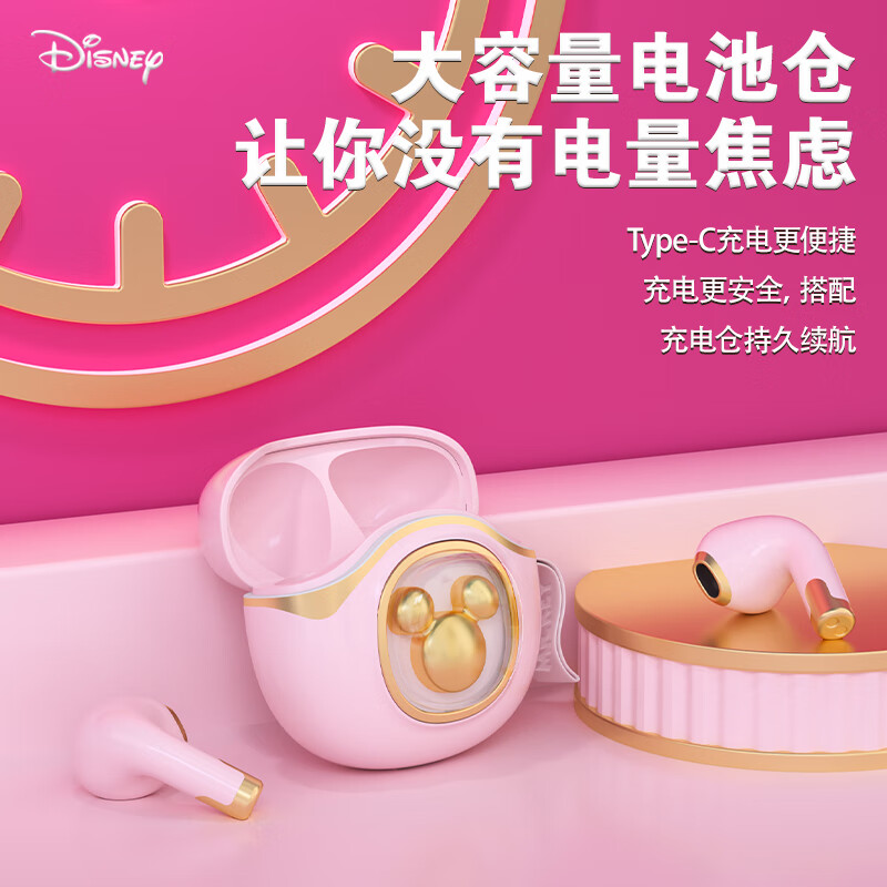 迪士尼(DISNEY)P600无线蓝牙耳机 半入耳式 超长续航 智能降噪 适用于苹果华为mate60/60pro小米荣耀 米奇粉价格:129.00元!