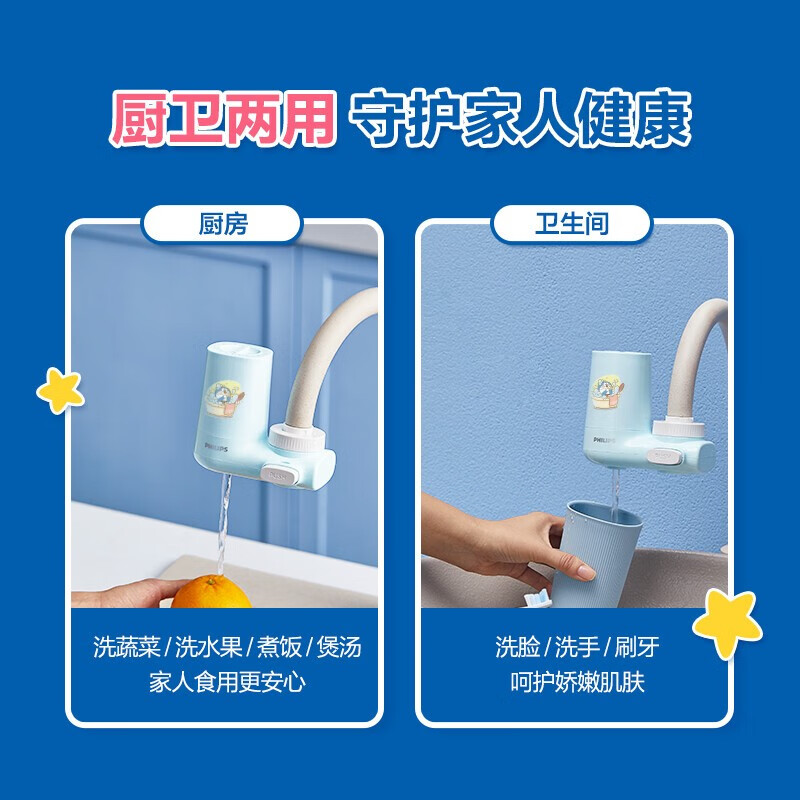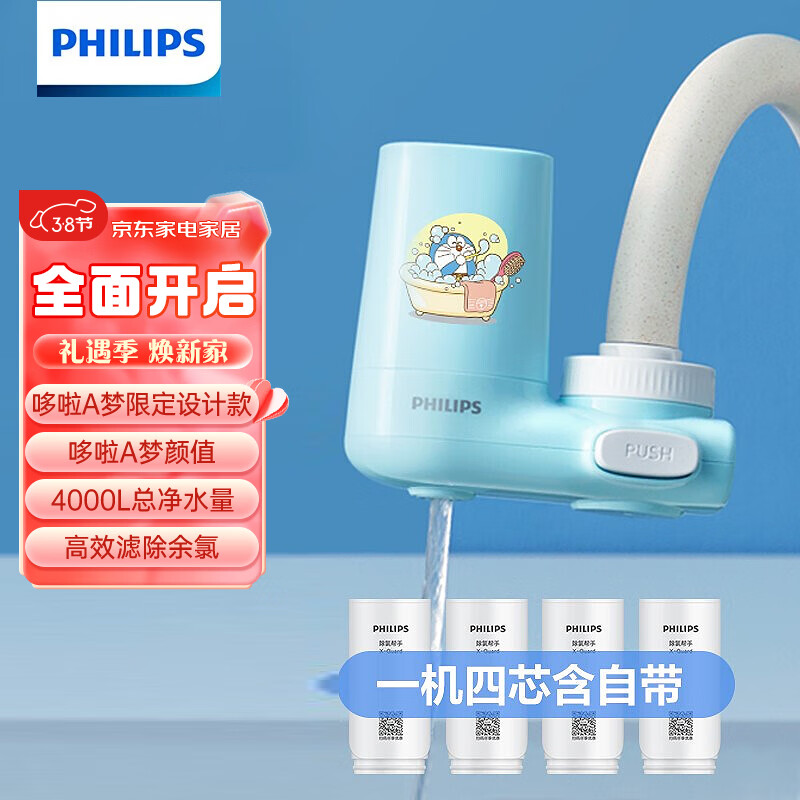 飞利浦(PHILIPS)哆啦A梦水龙头净水器家用水龙头过滤器 厨房自来水过滤器净水龙头 AWP3624(一机四芯)价格:119.00元!