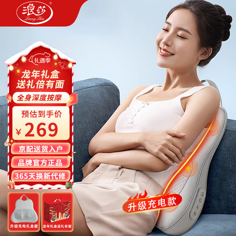 浪莎(langsha)38女神三八妇女节礼物腰部按摩器按摩靠垫肩腿背部颈椎按摩仪揉捏热敷便携送父母老人长辈生日礼物价格:319.00元!