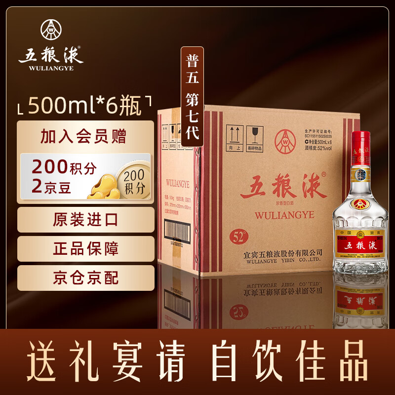 五粮液 普五 第七代 浓香型白酒 52度 500ml*6瓶整箱 商务宴请 海外版价格:5502.00元!